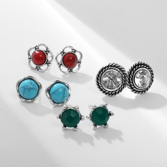 Пусеты 12 пар «Фантазия» крупные d=10 мм, цветные в серебре