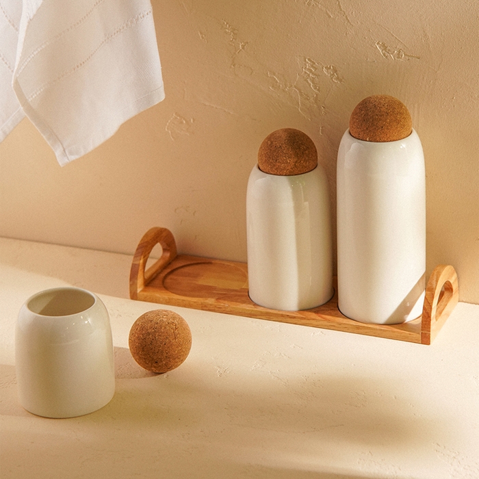 - Экологичные материалы: натуральный фарфор и пробковые крышки — это выбор в пользу экологичности и безопасности.