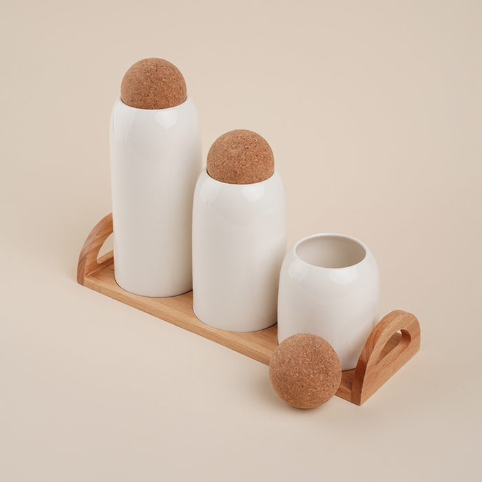 Каждая банка изготовлена из высококачественного фарфора, что гарантирует долговечность и устойчивость к износу. Пробковые крышки надежно защищают содержимое от влаги и пыли, при этом легко открываются и закрываются, обеспечивая удобство в использовании. Гладкая текстура белого фарфора идеально впишется в любой интерьер, добавив нотку изысканности.