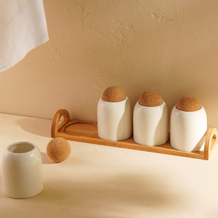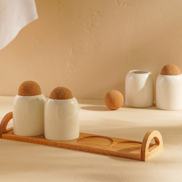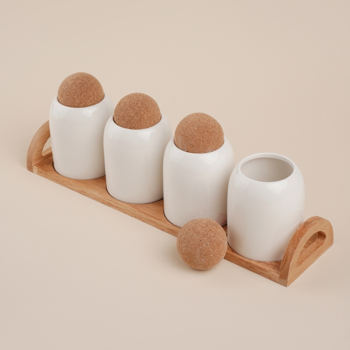 - Экологичные материалы: крышки из пробки плотно закрывают банки, защищая содержимое от внешних воздействий, а фарфор гарантирует отсутствие посторонних запахов и вкусов.