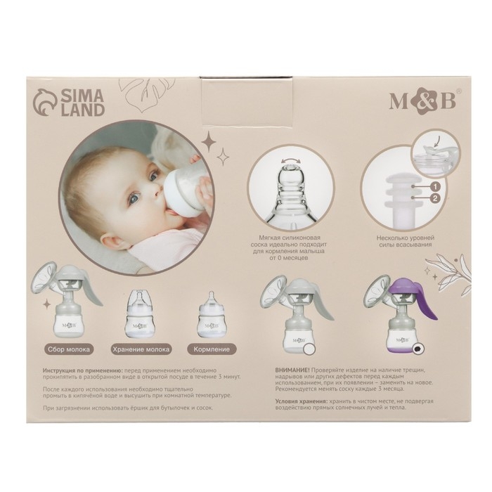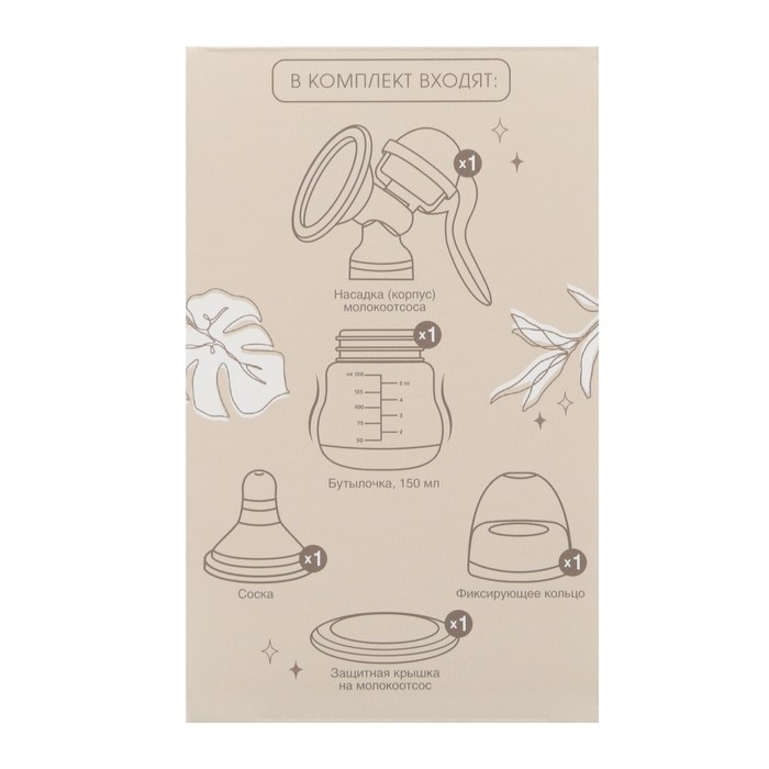 Ручной молокоотсос с бутылочкой (широкое горло) и соской для кормления новорожденных.