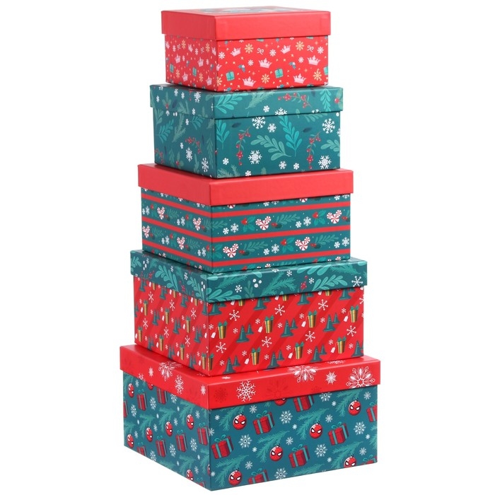 Новый год. Набор коробок 5 в 1 "С Новым Годом!", Disney зелено-красная