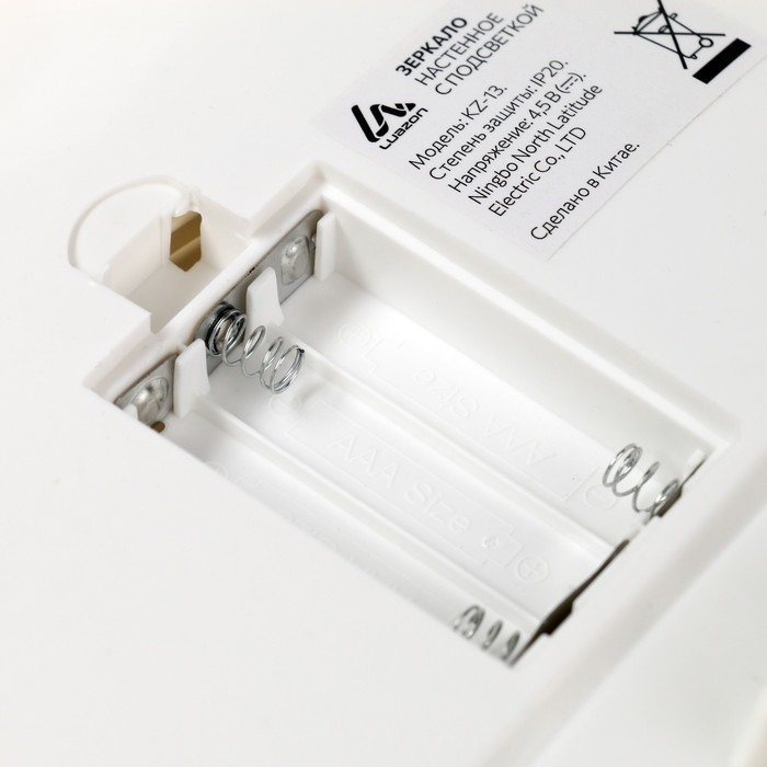 Зеркало работает от 3 батареек ААА (не в комплекте).