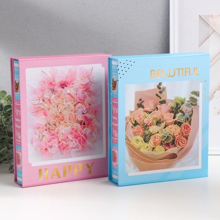 Фотоальбом на 100 фото 10х15 см "Пышные розовые цветы" в коробке МИКС 26,5х21х5,3 см