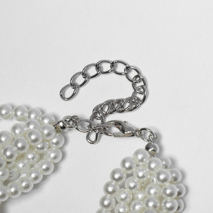Браслет жемчуг «На леске» сердце, бусины №4, 6, цвет белый в серебре, 16 см