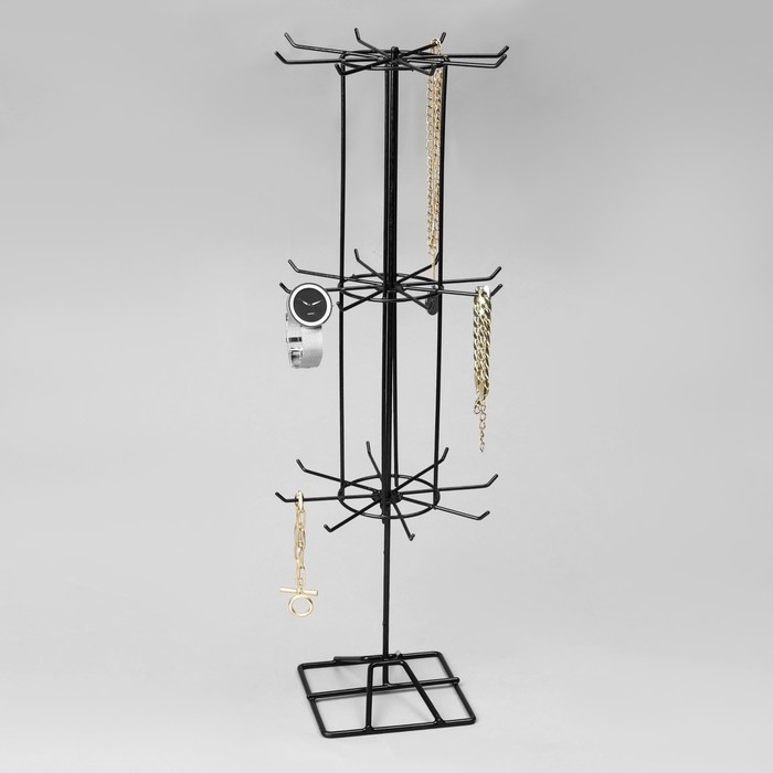 Вертушка, 3 яруса по 10 крючков, 27×65 см, цвет чёрный