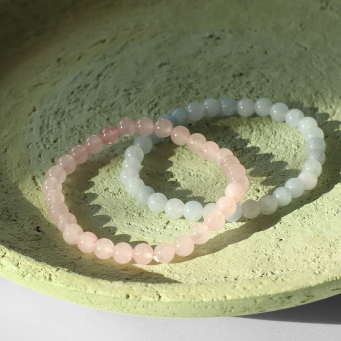 Набор браслетов 2 шт. шар №6 «Кварц розовый и Аквамарин»