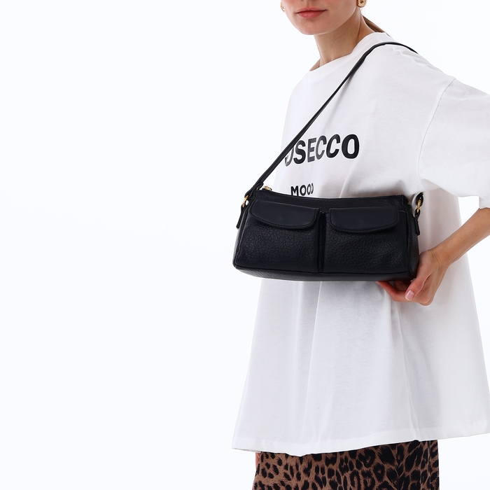 - Элегантный дизайн: лаконичные линии и классический черный цвет позволяют легко сочетать сумку с различными образами, от деловых до повседневных.