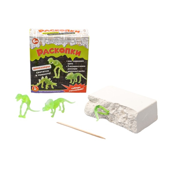 Настольная игра «Раскопки. Набор юного палеонтолога», 3 фигурки динозавров