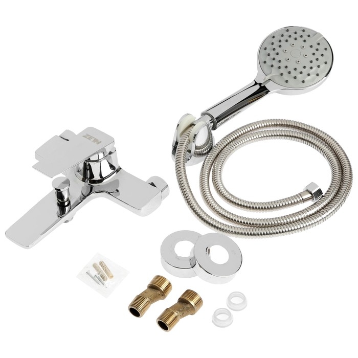 Смеситель для ванны ZEIN Z3889, однорычажный, лейка 3 режима, шланг, держатель, хром