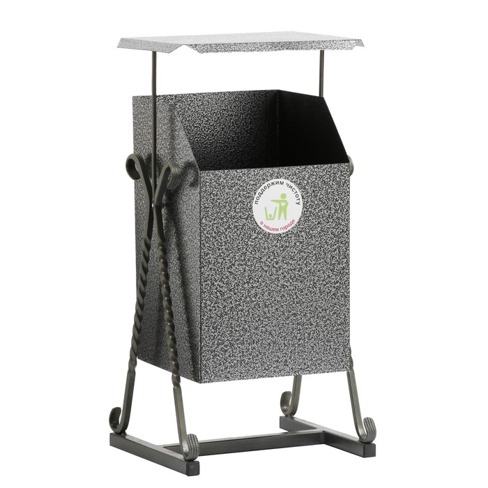 Урна уличная "Квадратная на гнутых ножках" с крышей 22 л, серая, бак 0,5 мм, 63 х 33 х 33 см