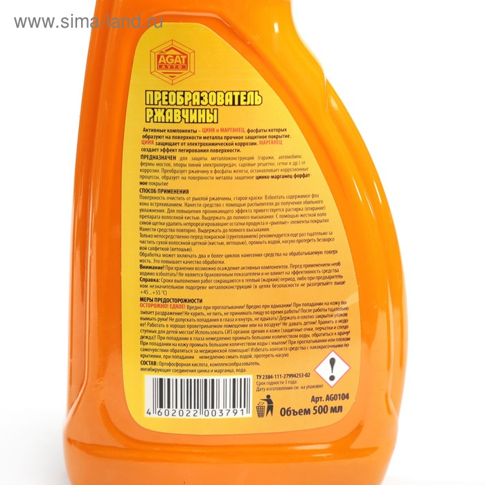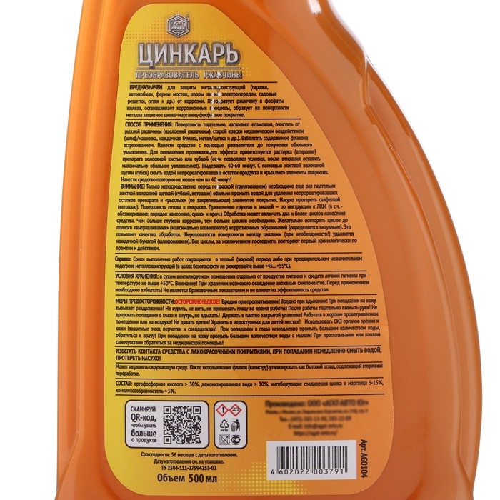 Преобразователь ржавчины ЦИНКАРЬ, 0,5 л с распылителем