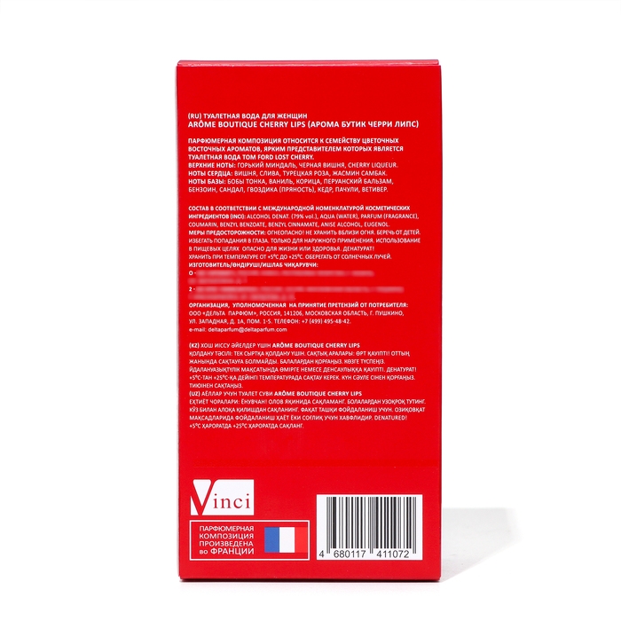 - Верхние ноты: горький миндаль, ликер, вишня