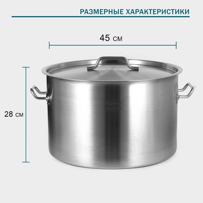 Кастрюля из нержавеющей стали Hanna Knovell, 47 л, d=45 см, h=28 см, толщина стенки 1 мм, металлическая крышка