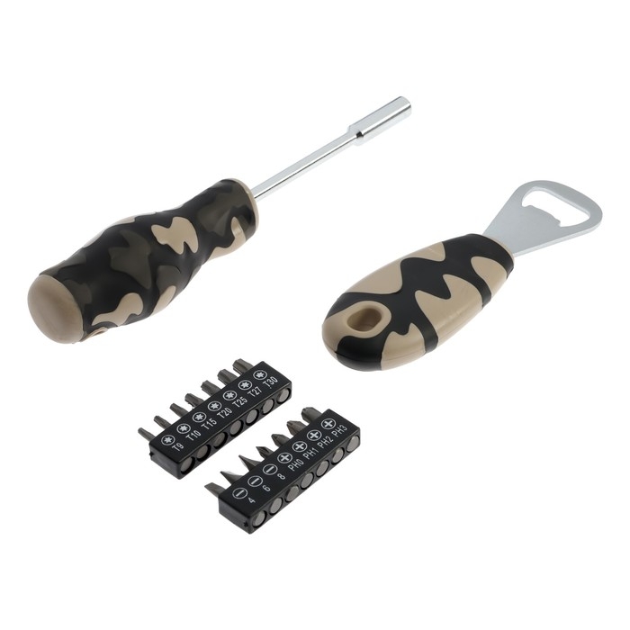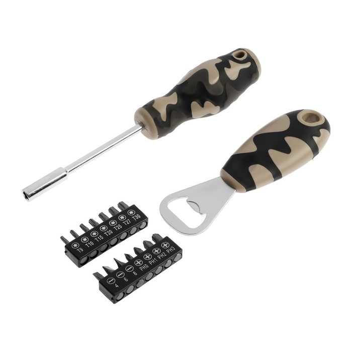 Набор инструментов в блистере ТУНДРА, открывашка, отвертка с битами, 16 предметов