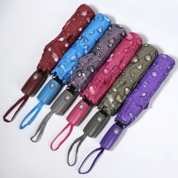 Зонт полуавтоматический «Капли», эпонж, 3 сложения, 8 спиц, R = 48/55 см, D = 110 см, цвет МИКС