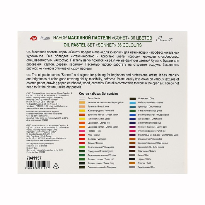 Пастель масляная ЗХК "Сонет", 36 цветов, 9/59 мм, круглая, 7041157