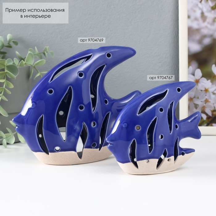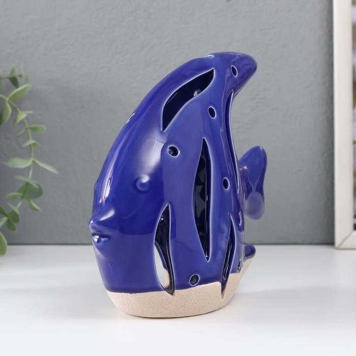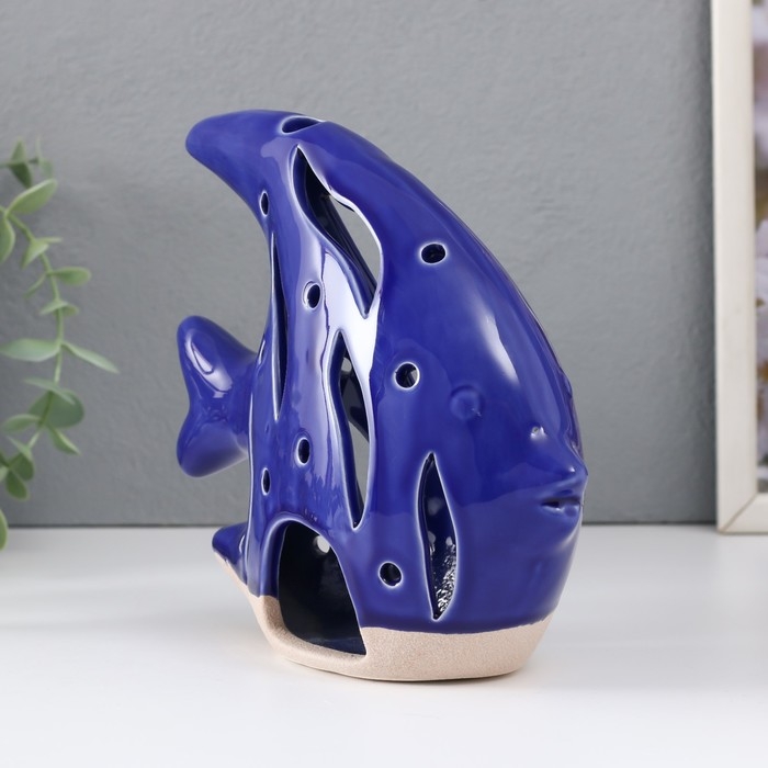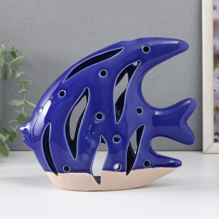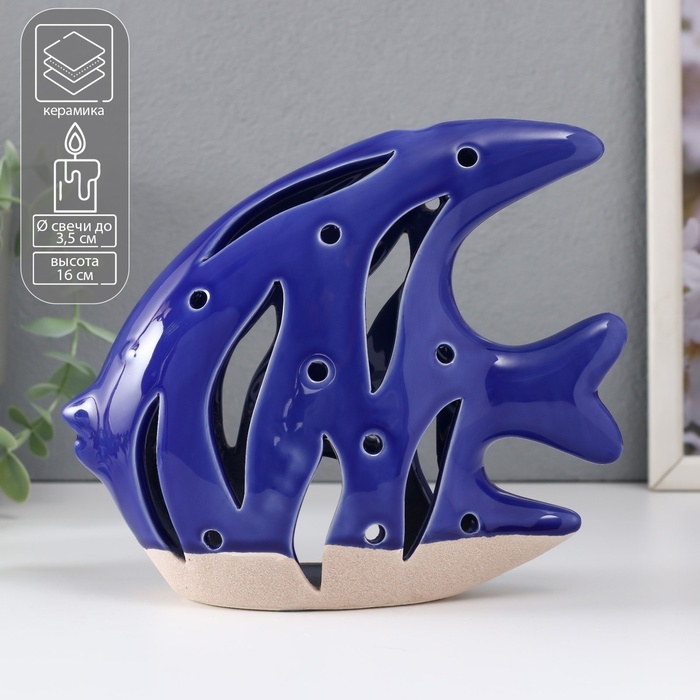 Подсвечник керамика "Рыба Скалярия" песочно-синий 18,3х7,3х16 см