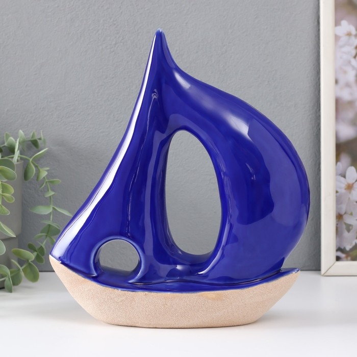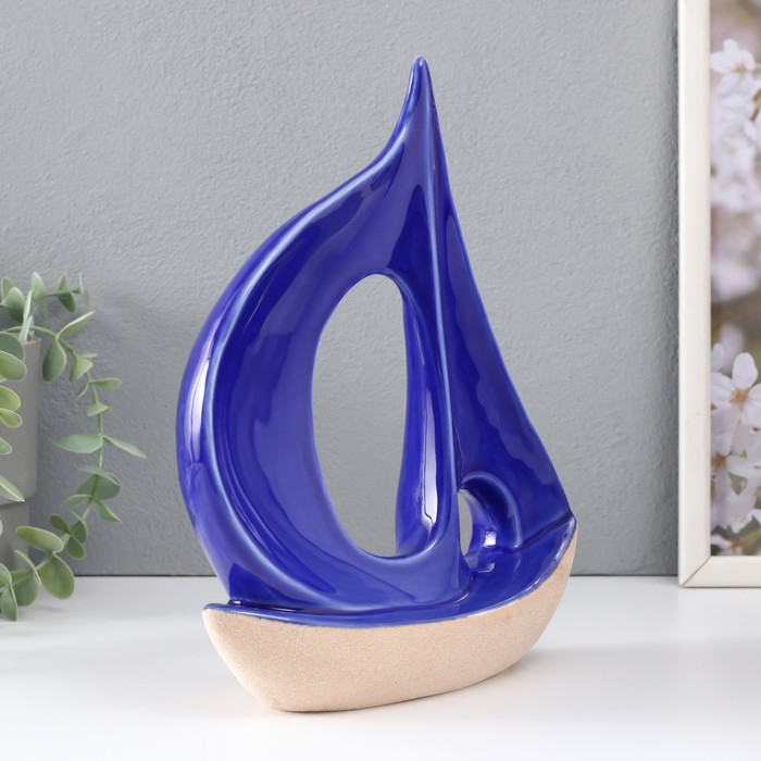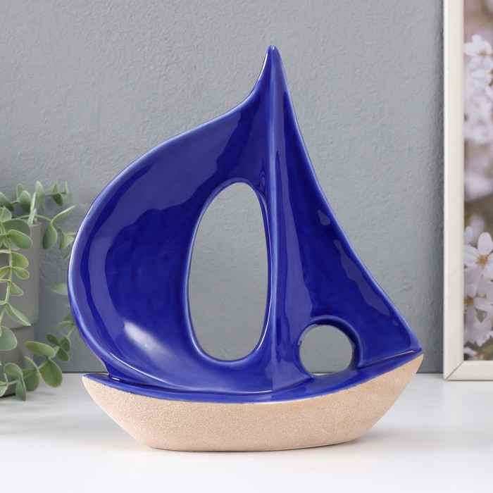 Сувенир керамика "Большой парусник" песочно-синий 22,5х8,5х25,3 см