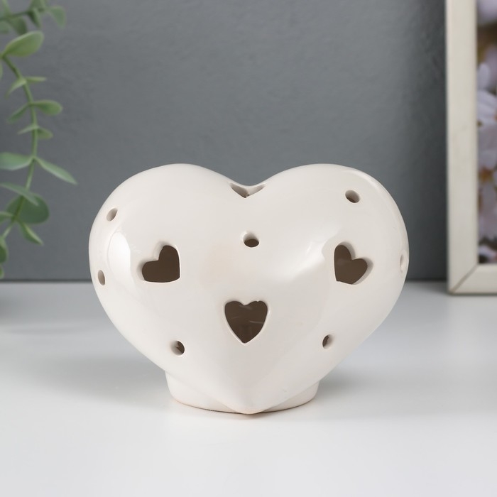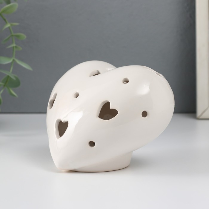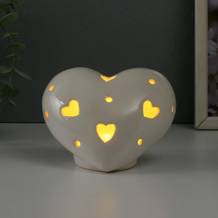 Сувенир керамика свет "Сердце" белый 12,3х9х8,6 см