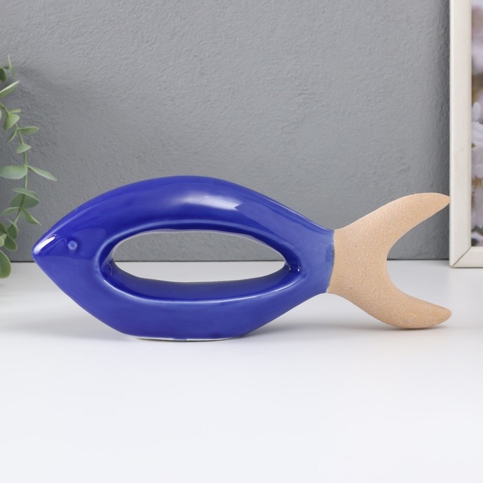 Сувенир керамика "Рыбка" песочно-синяя 26х5,5х9,5 см