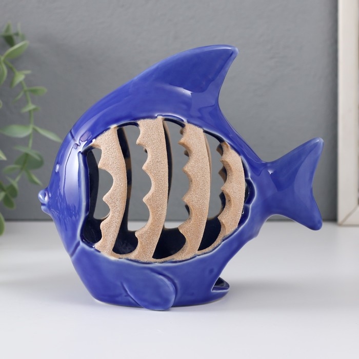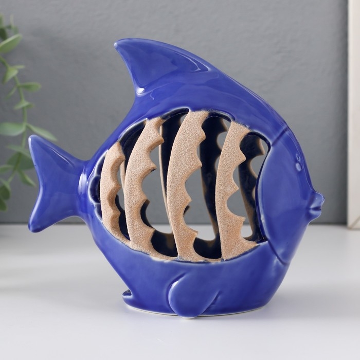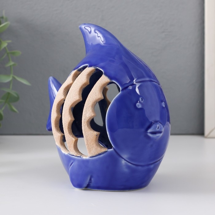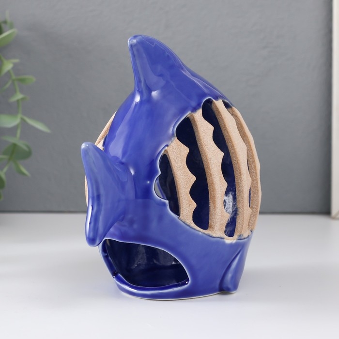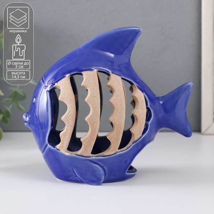 Подсвечник керамика на 1 свечу "Рыбка с узорами" синий 15,7х8,8х14,3 см
