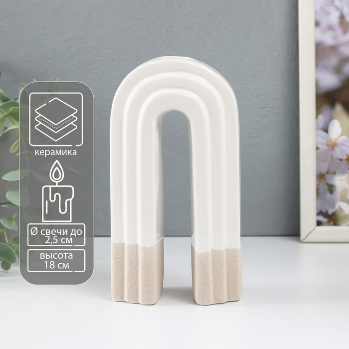 Подсвечник керамика на 1 свечу "Скара" песочно-белый 10,3х6,2х18 см