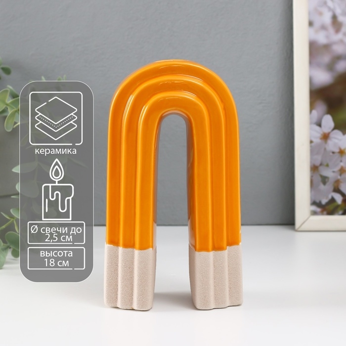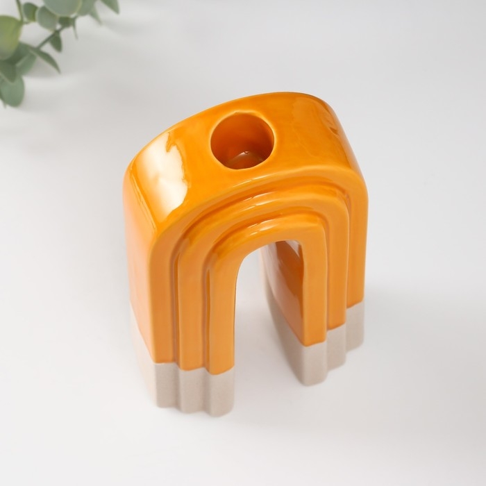 Подсвечник керамика на 1 свечу "Скара" песочно-оранжевый 10,3х6,2х18 см