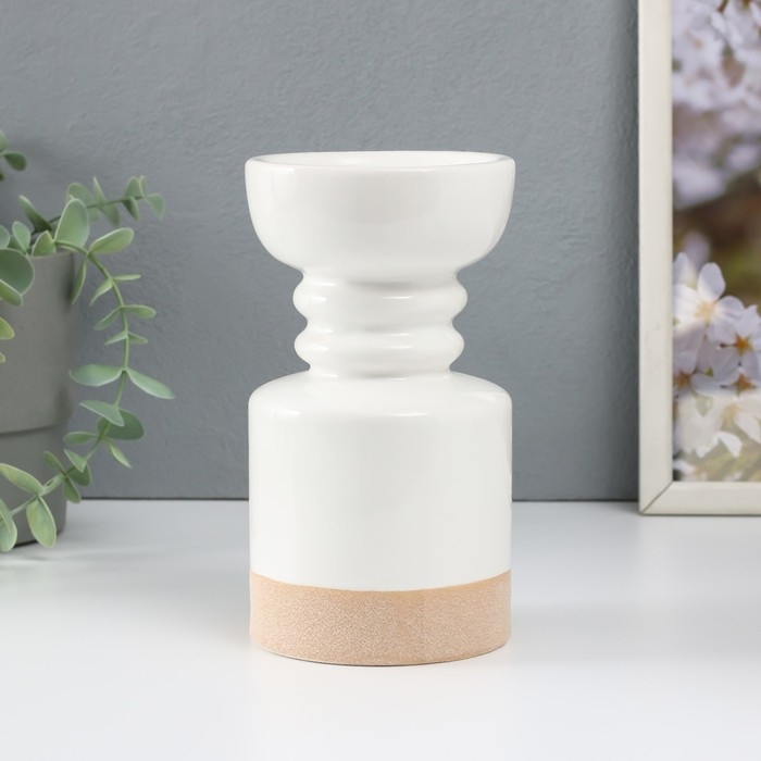 Подсвечник керамика на 1 свечу "Атлант" песочно-белый 9,5х9,5х17,5 см