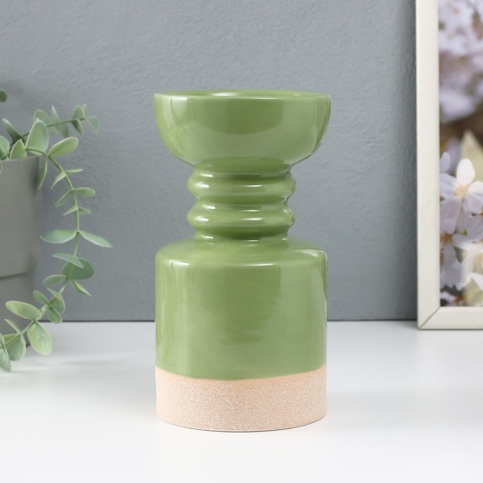 Подсвечник керамика на 1 свечу "Атлант" песочно-зелёный 9,5х9,5х17,5 см