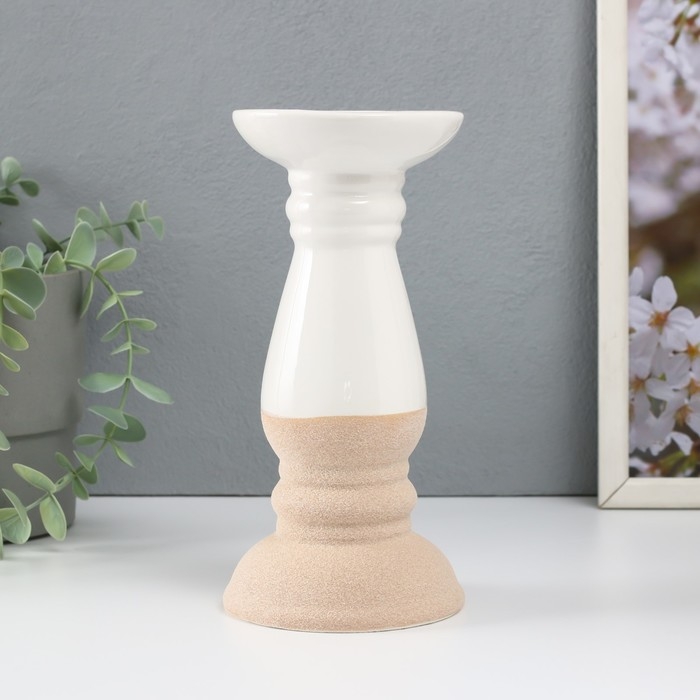 Подсвечник керамика на 1 свечу "Пирей" песочно-белый 9,8х9,8х20 см