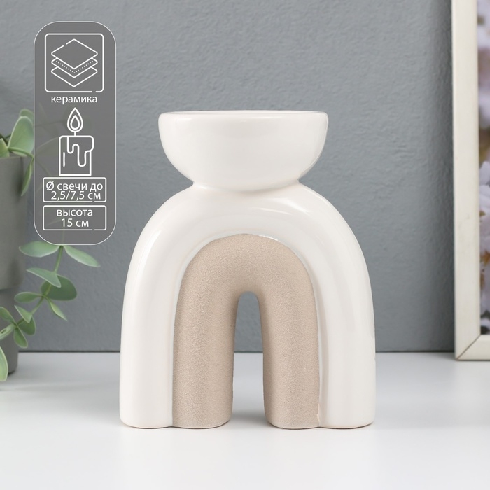 Подсвечник керамика на 1 свечу "Медуза" песочно-белый 11,7х8х15 см