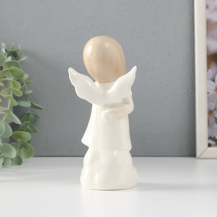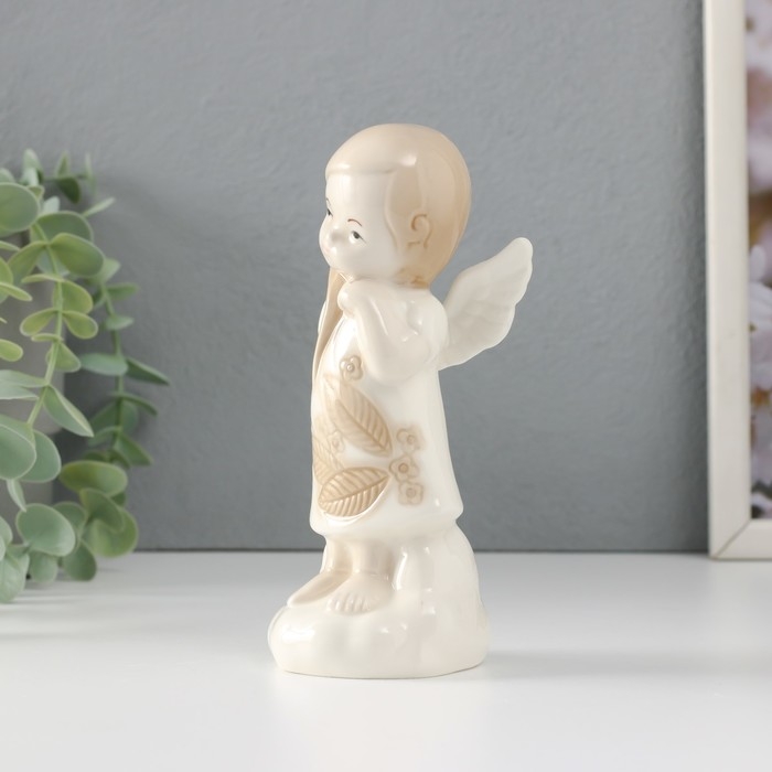 Сувенир керамика "Девочка-ангел в платье с листиками на облаке думает" 6,8х5,4х14,5 см