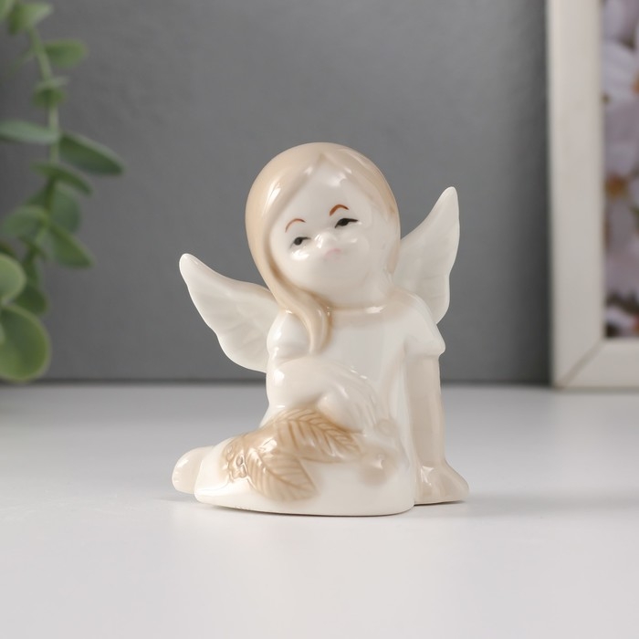 Сувенир керамика "Девочка-ангел в платье с листьями сидит" 5,8х3,5х7 см