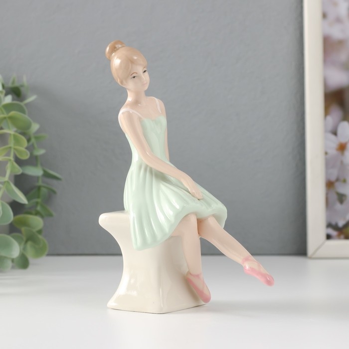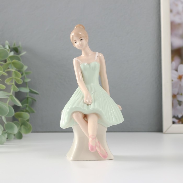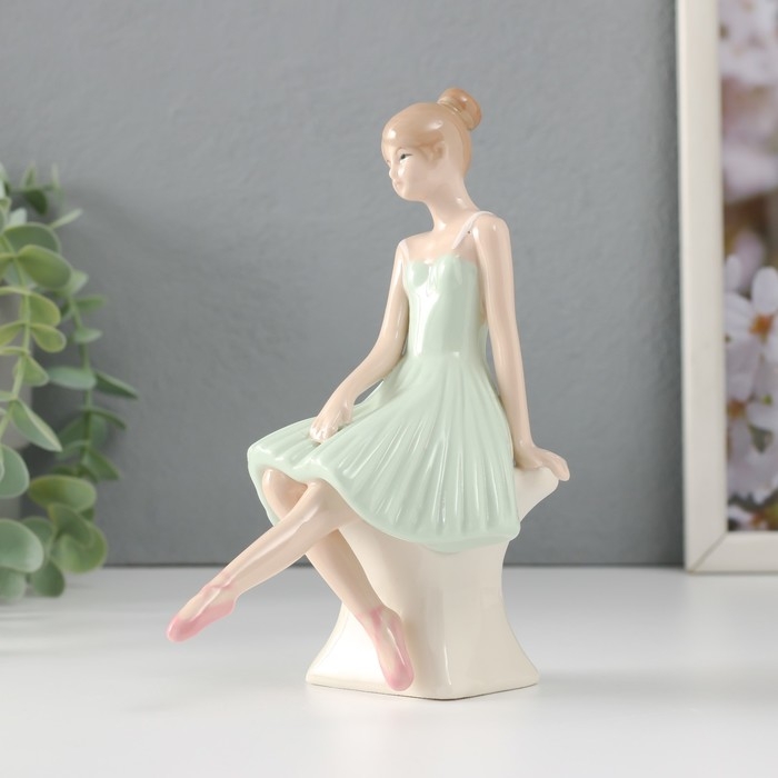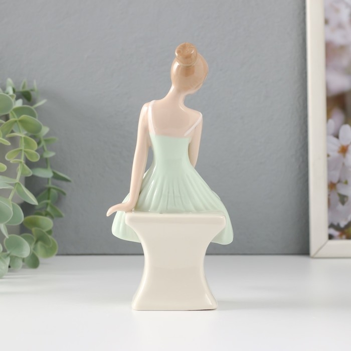 Сувенир керамика "Балерина в зелёном платье на банкетке" 11х8х16,5 см