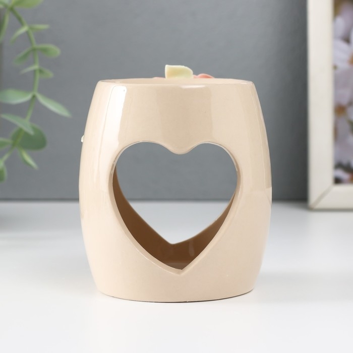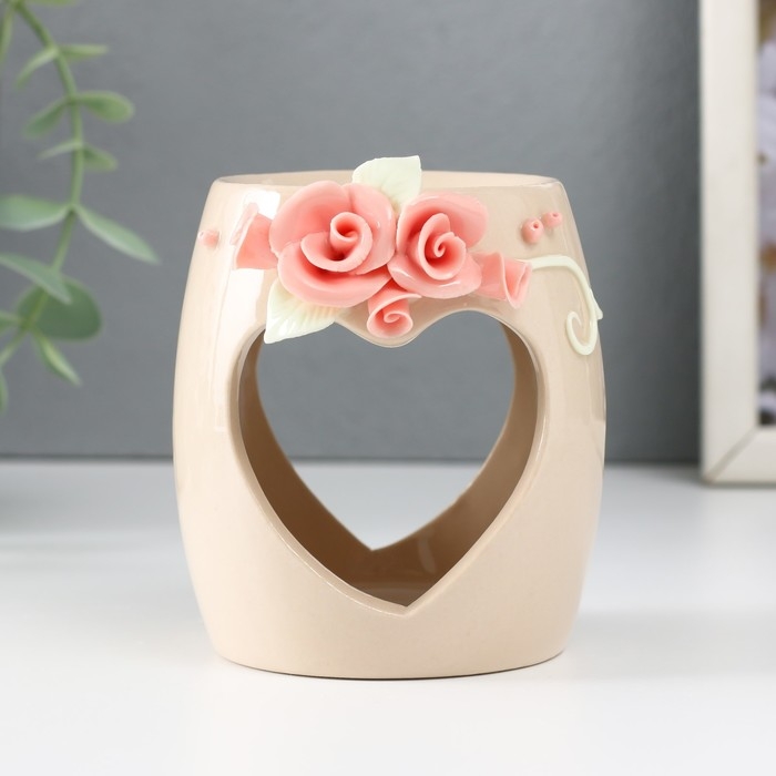 Аромалампа керамика "Сердце с розами" бежевая 8х8х9 см