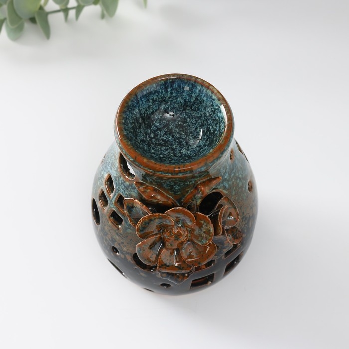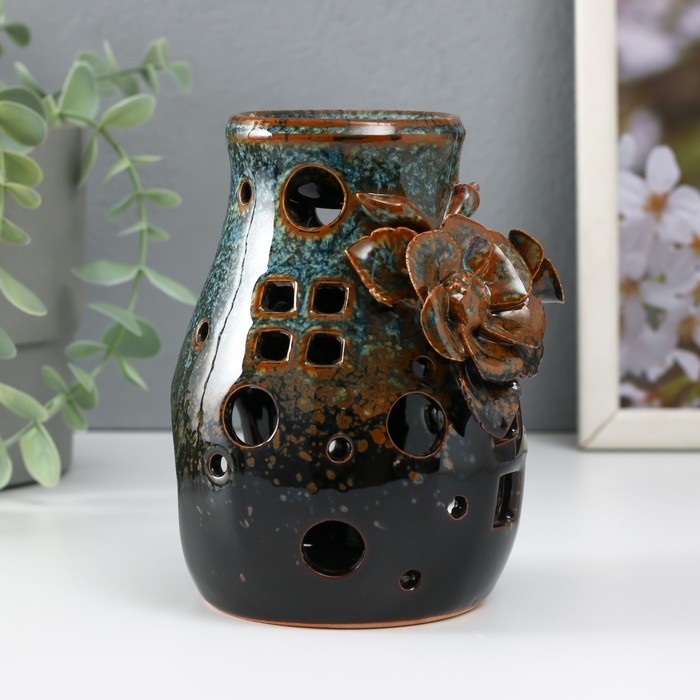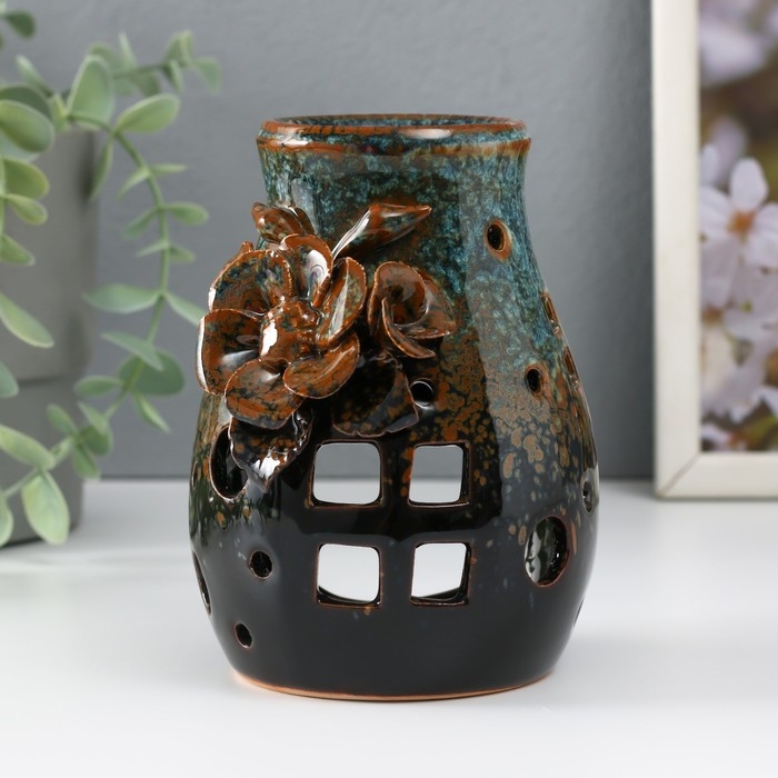 Аромалампа керамика "Полевой цветок" коричневая 9х9,5х13,5 см