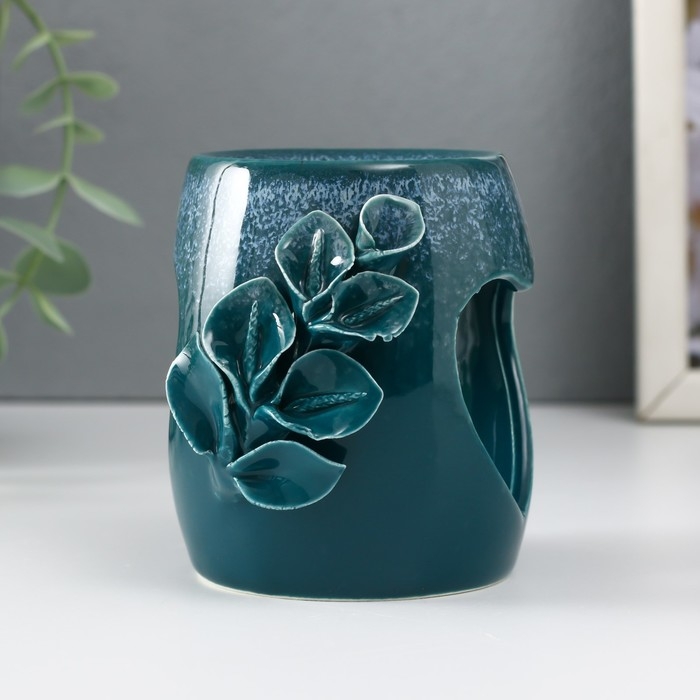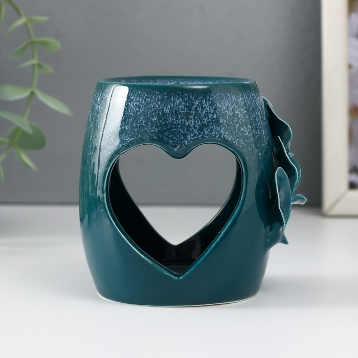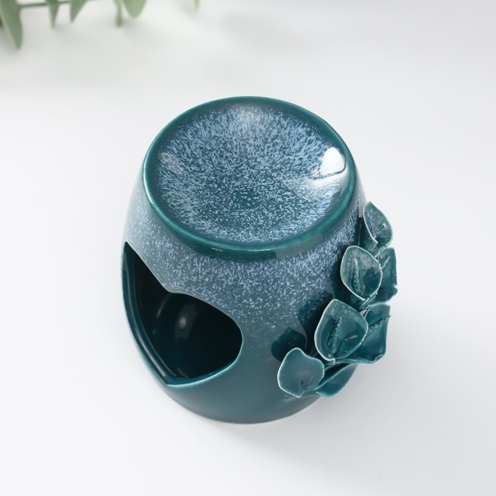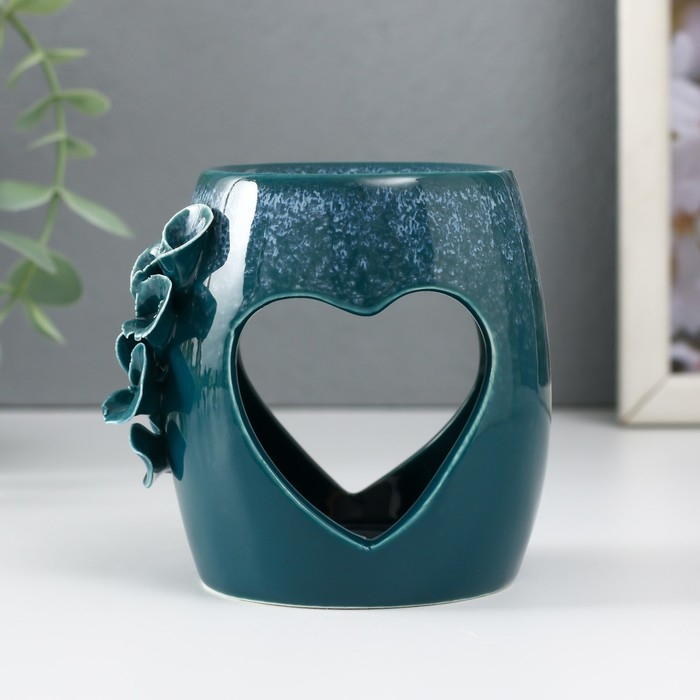 Аромалампа керамика "Сердце с листиками" бело-синяя 8,5х7,5х9 см