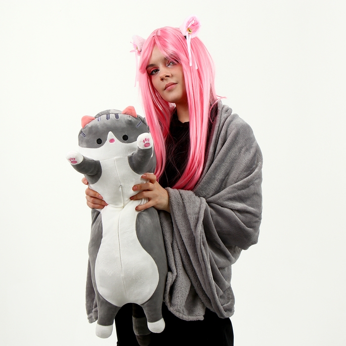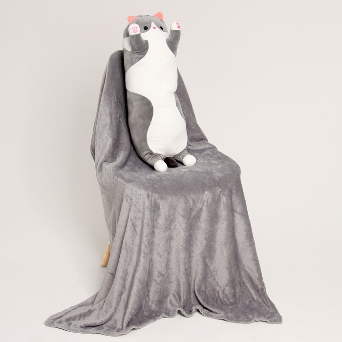 Мягкая игрушка «Котик», с пледом, 65 см, цвет серый
