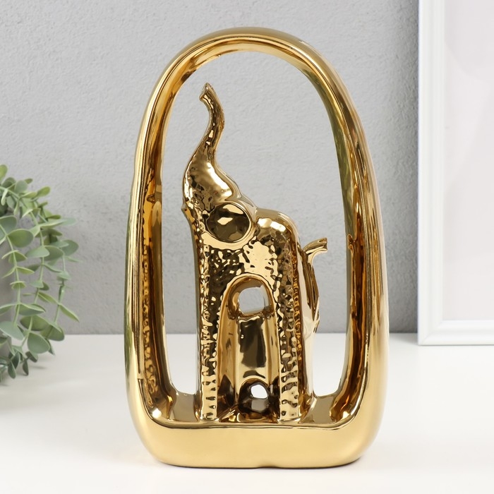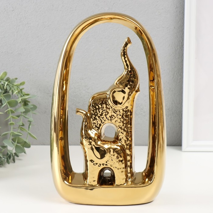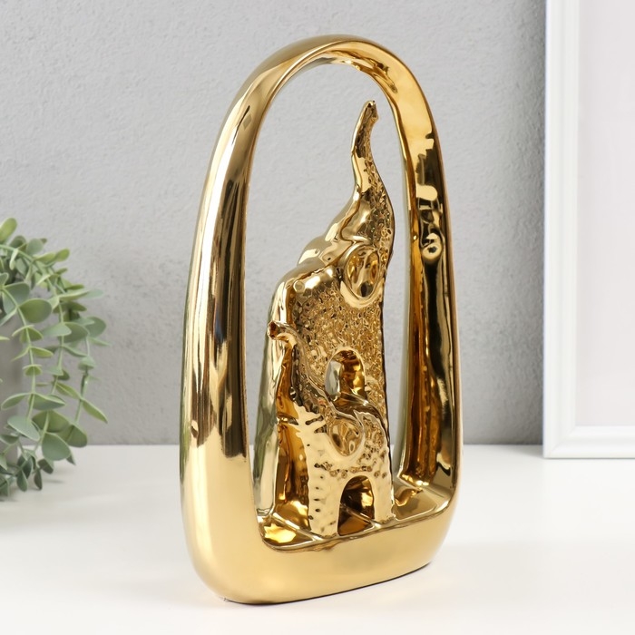 Сувенир керамика "Слон и слонёнок" золото 5,5х17,5х29 см