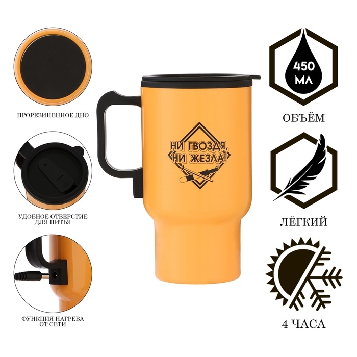 Термокружка, 450 мл, Автомобильная "Ни гвоздя, ни жезла", сохраняет тепло 4ч, 12 х 17см