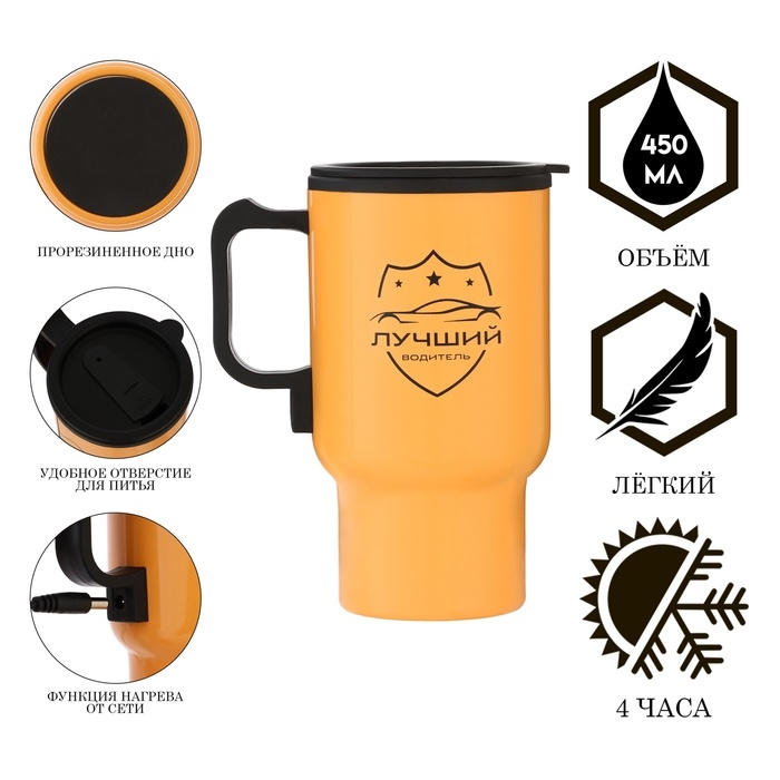 Термокружка, 450 мл, Автомобильная "Лучший водитель", сохраняет тепло 4 ч, 12 х 17 см