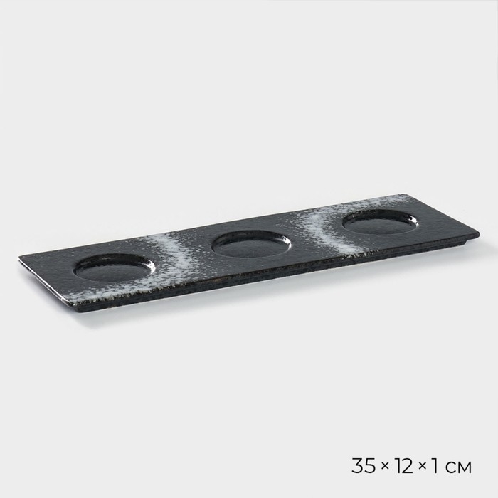Набор фарфоровых соусников на фарфоровой подставке Magistro «Ночной дождь», 4 предмета: соусник 3 шт 100 мл, подставка 35×12×1 см, цвет чёрный