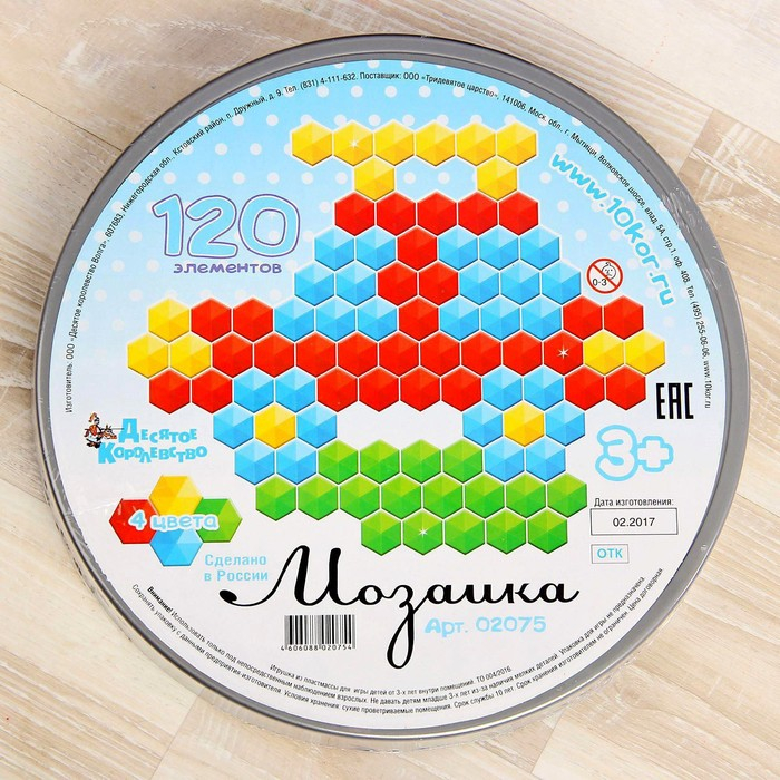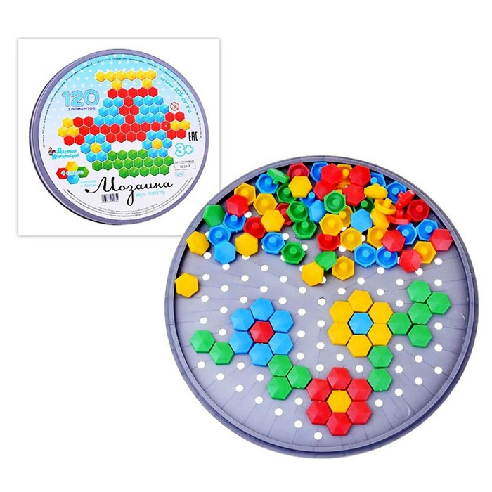 Мозаика шестигранная, 120 элементов (круглая пласт.коробка)