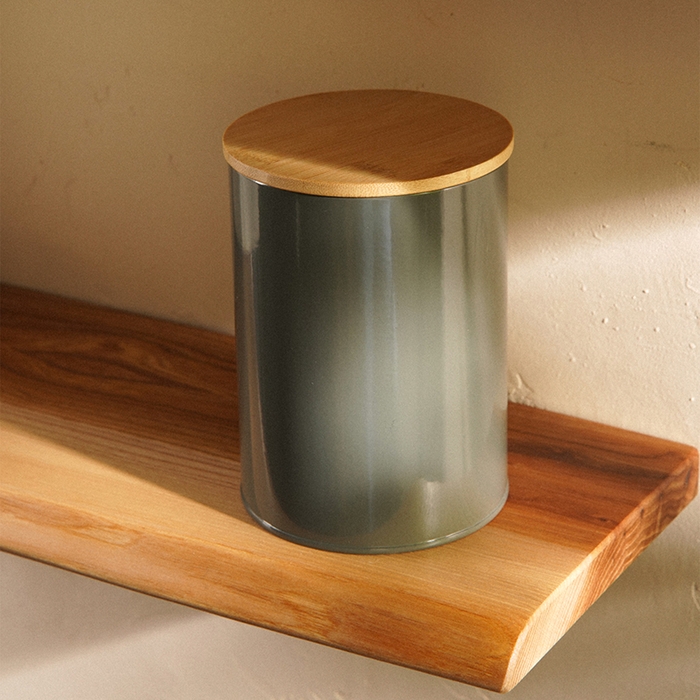 Благодаря герметичной бамбуковой крышке, продукты остаются свежими и защищёнными от влаги. Стильный серый цвет и гладкая текстура придают банке современный и минималистичный вид, который будет радовать глаз каждый день.