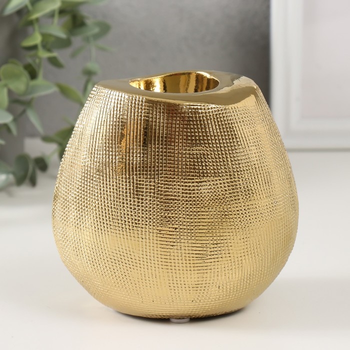 Подсвечник керамика на 1 свечу "Глория" d=4 см золото 12,5х8х12 см