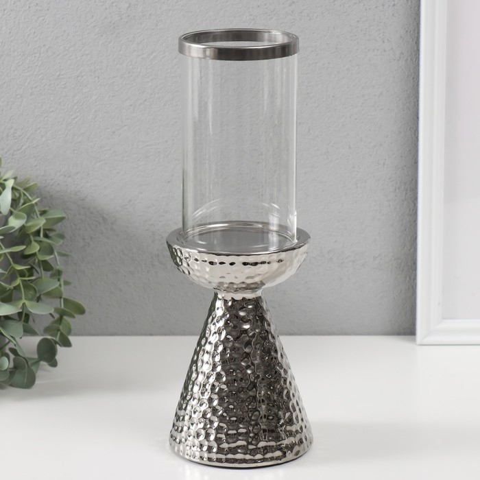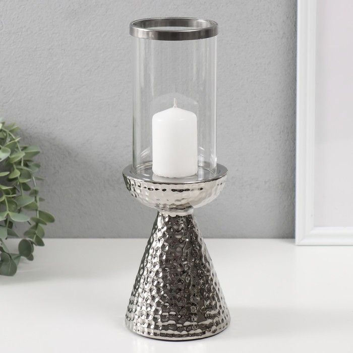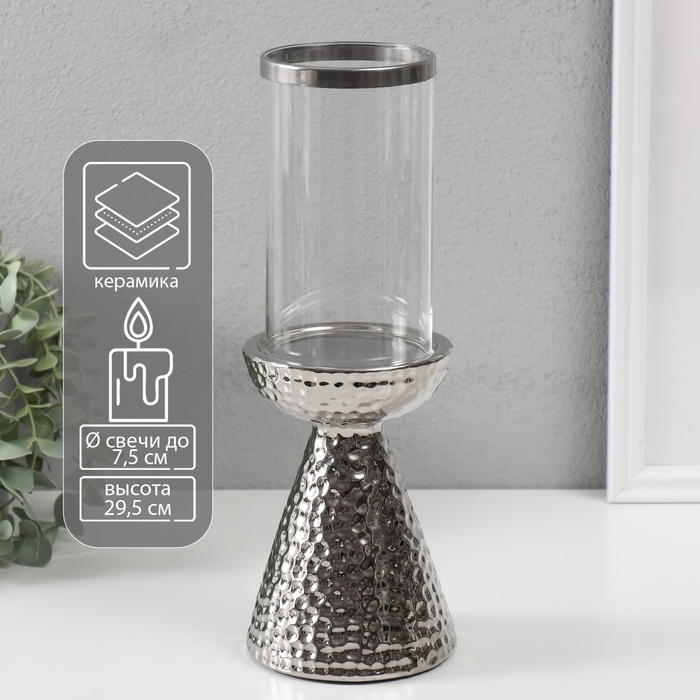 Подсвечник керамика, стекло на 1 свечу "Ибис" d=7,5 см серебро 10,5х10,5х29,5 см
