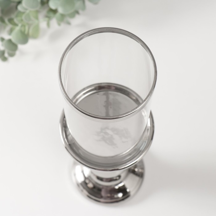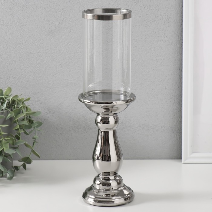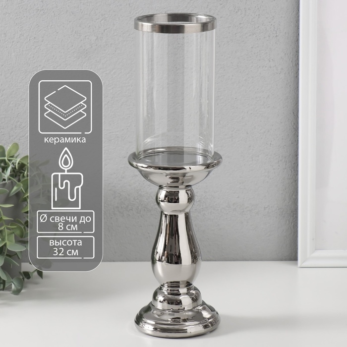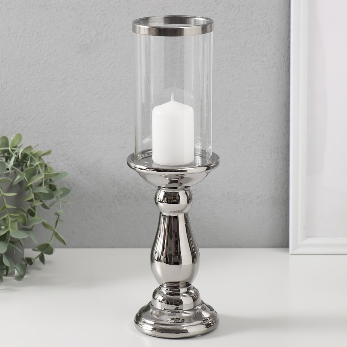 Подсвечник керамика, стекло на 1 свечу "Магистр" d=8 см серебро 9,5х9,5х32 см