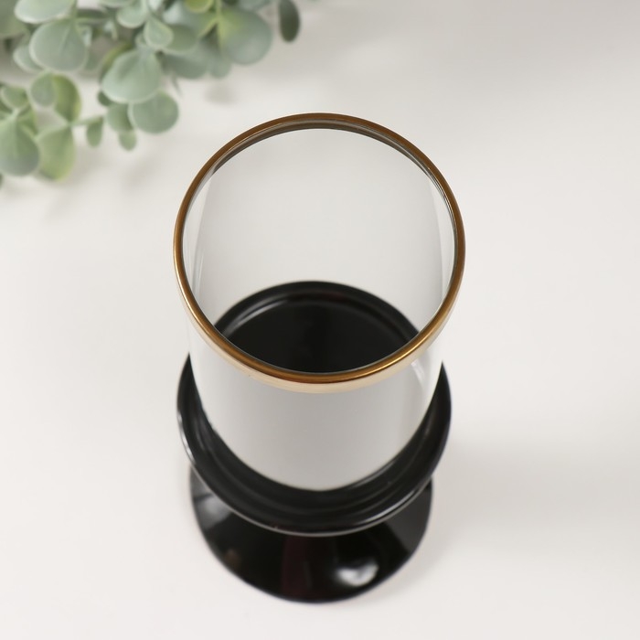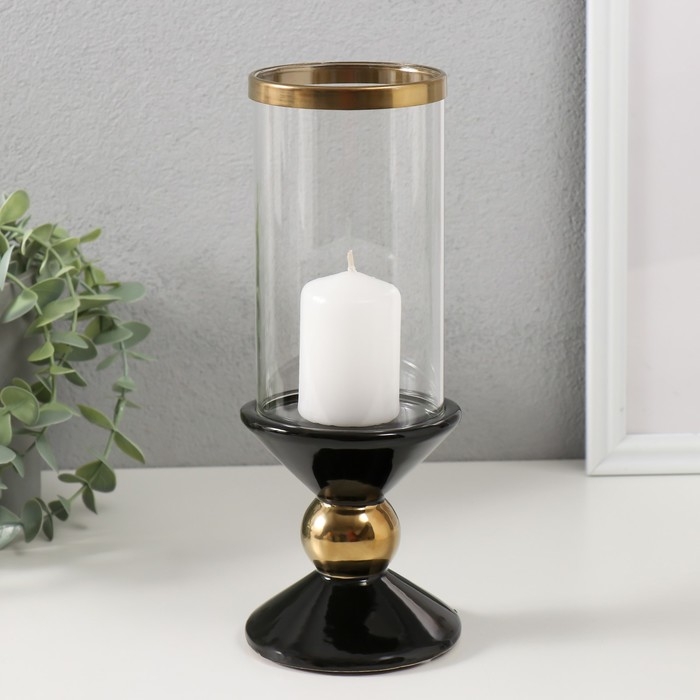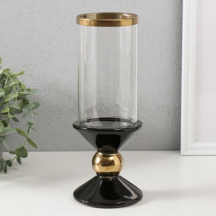 Подсвечник керамика, стекло на 1 свечу "Параллели" d=7,5 см чёрный с золотом 9,5х9,5х24 см