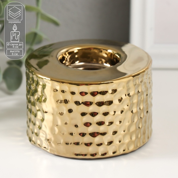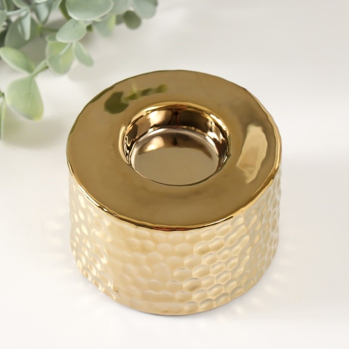Подсвечник керамика на 1 свечу "Капли дождя на песке" d=4 см золото 9х9х6 см